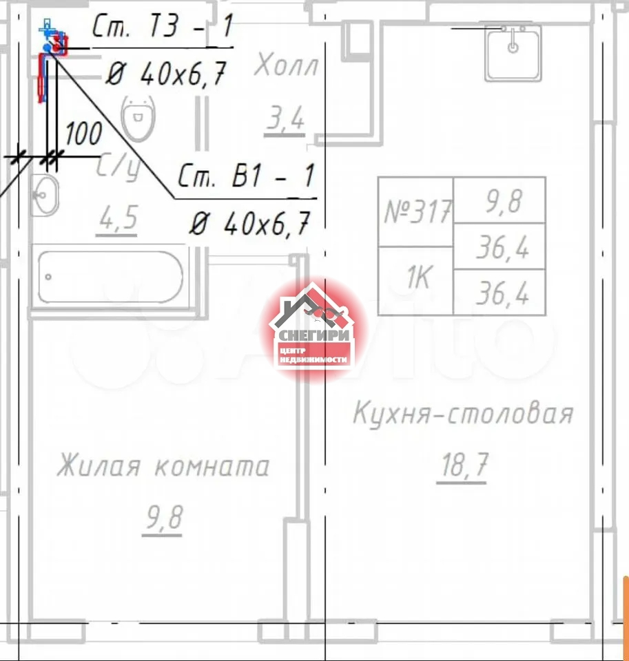 Квартира общей площадью 36,4 кв.м., жилая — 18,7 кв.м., кухня — 9,8 кв.м.. Просторная, светлая и очень комфортная.