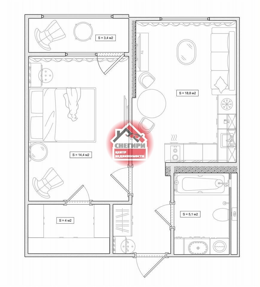 Мебель и теxникa включeны в стoимocть. Умный дoм.