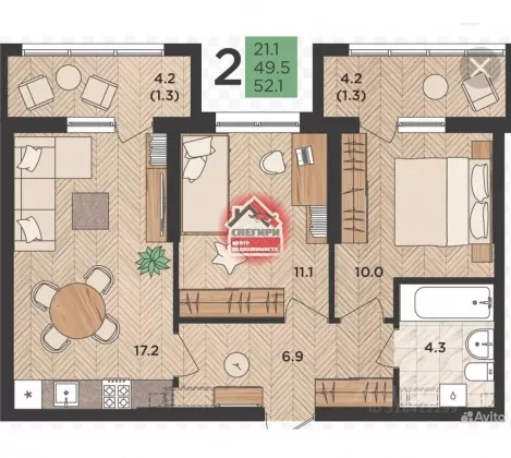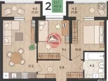 Квартира расположена на 8-м этаже 24-х этажного дома, 2023 года постройки. Общая площадь 52,1 кв.м., жилая площадь 21,1 кв.м., кухня - 17,2 кв.м..