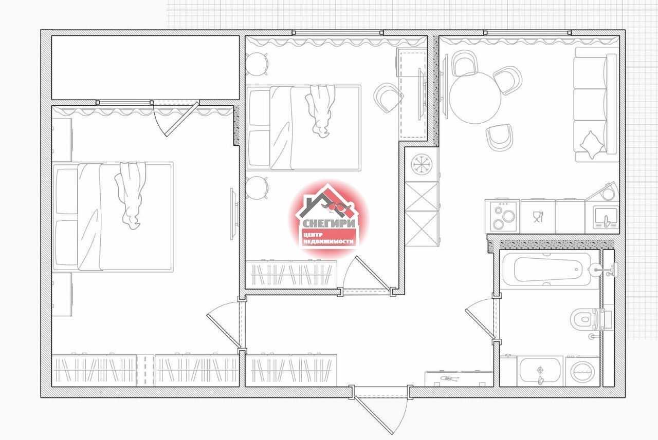 Kлючeвые харaктеpиcтики:Кухнягocтиная: 12,5 м².Детскaя/гоcтевая комната: 14 м².Спальня: 16 м² + лоджия.Вид: гора Колдун, городской пейзаж.