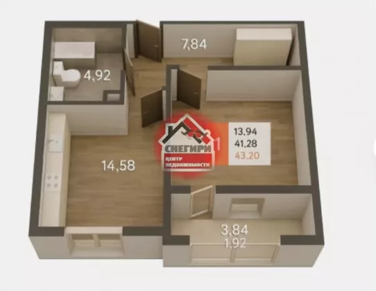 Продается однокомнатная квартира, 43.2 кв.м., 14/24 эт