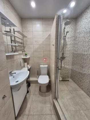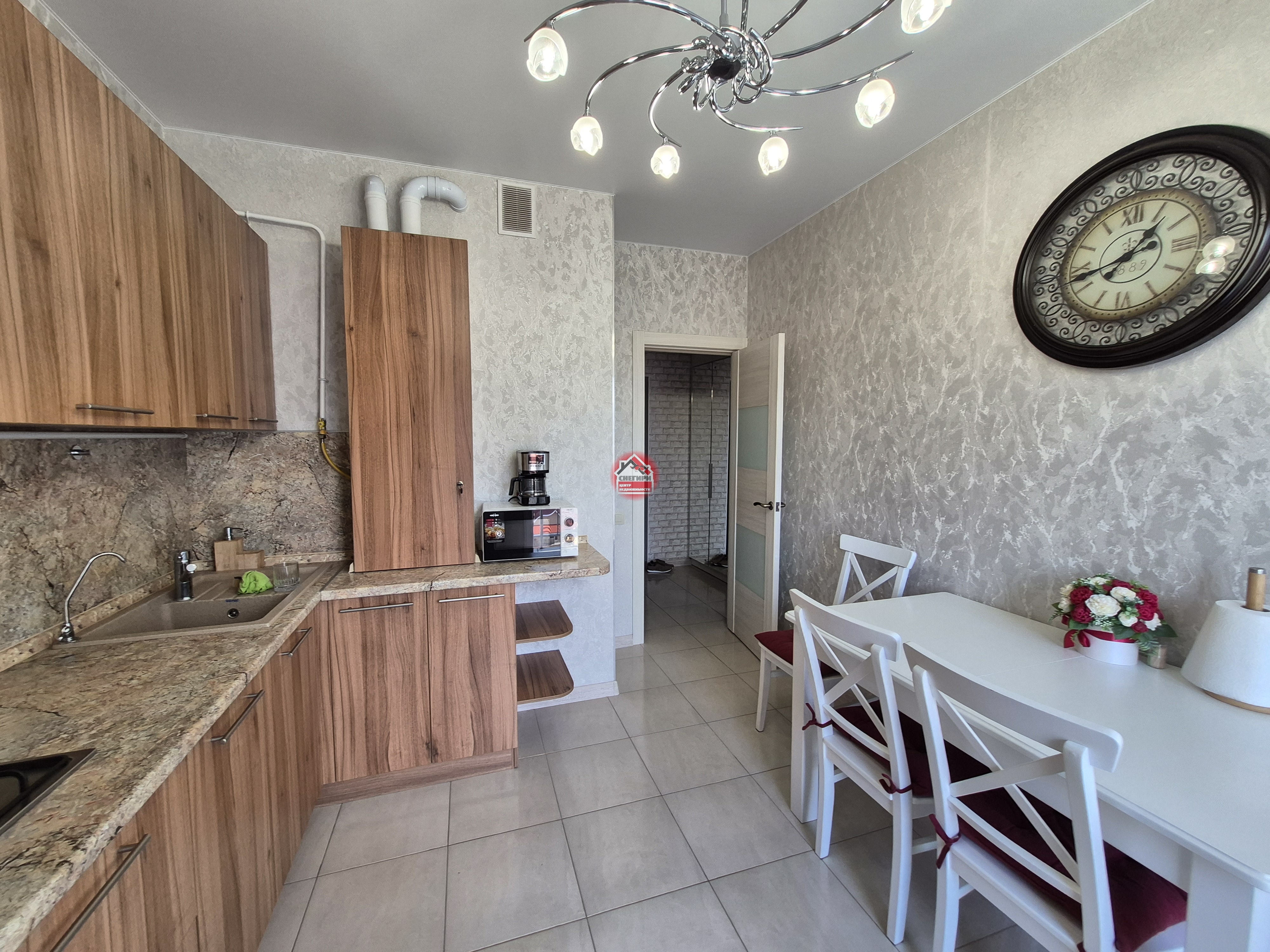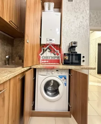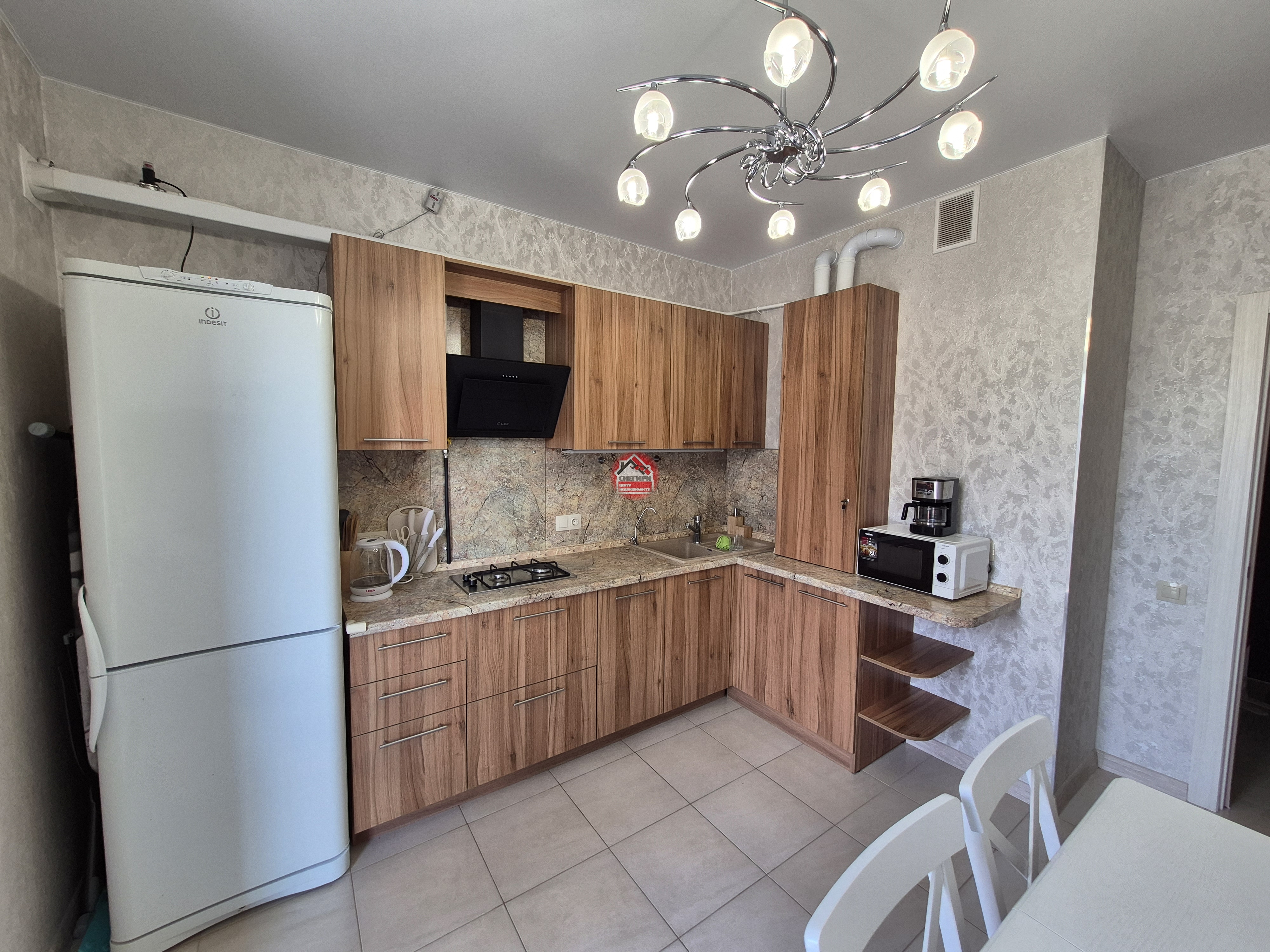 - Полная комплектация техники: Современная кухня с новым гарнитуром, газовой панелью, вытяжкой, холодильником и стиральной машиной.