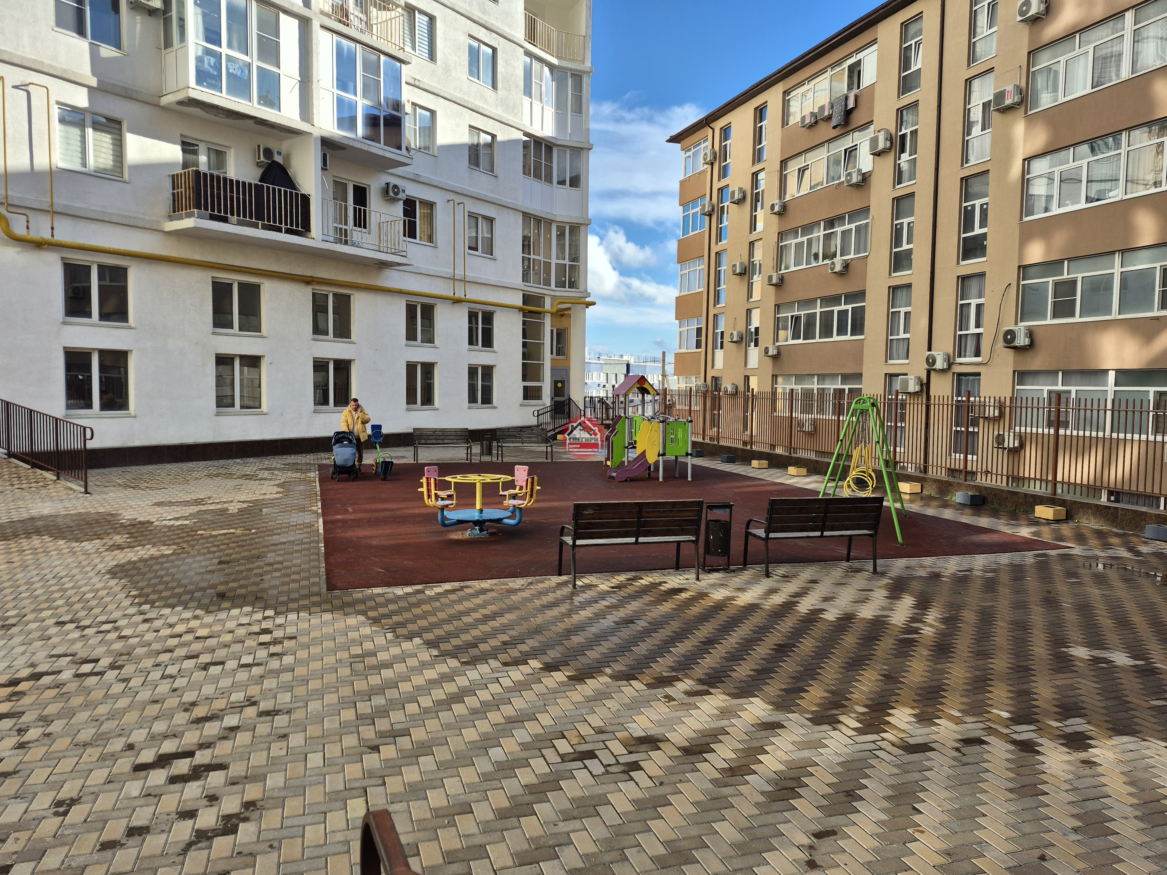 - Закрытая территория буквой «П» создает тень, поэтому на детской площадке всегда комфортно, нет палящего солнца.