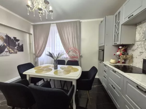 • В комнатах и на кухне установлена современная мебель и техника — всё остаётся новым владельцам (по договоренности).