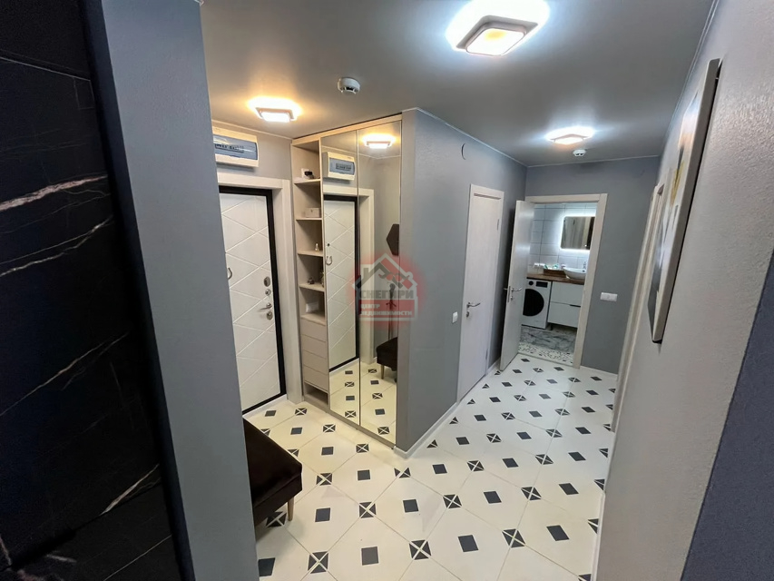 - Вся техника в комплекте: Остаются встроенный холодильник, посудомоечная машина и стиральная машина.