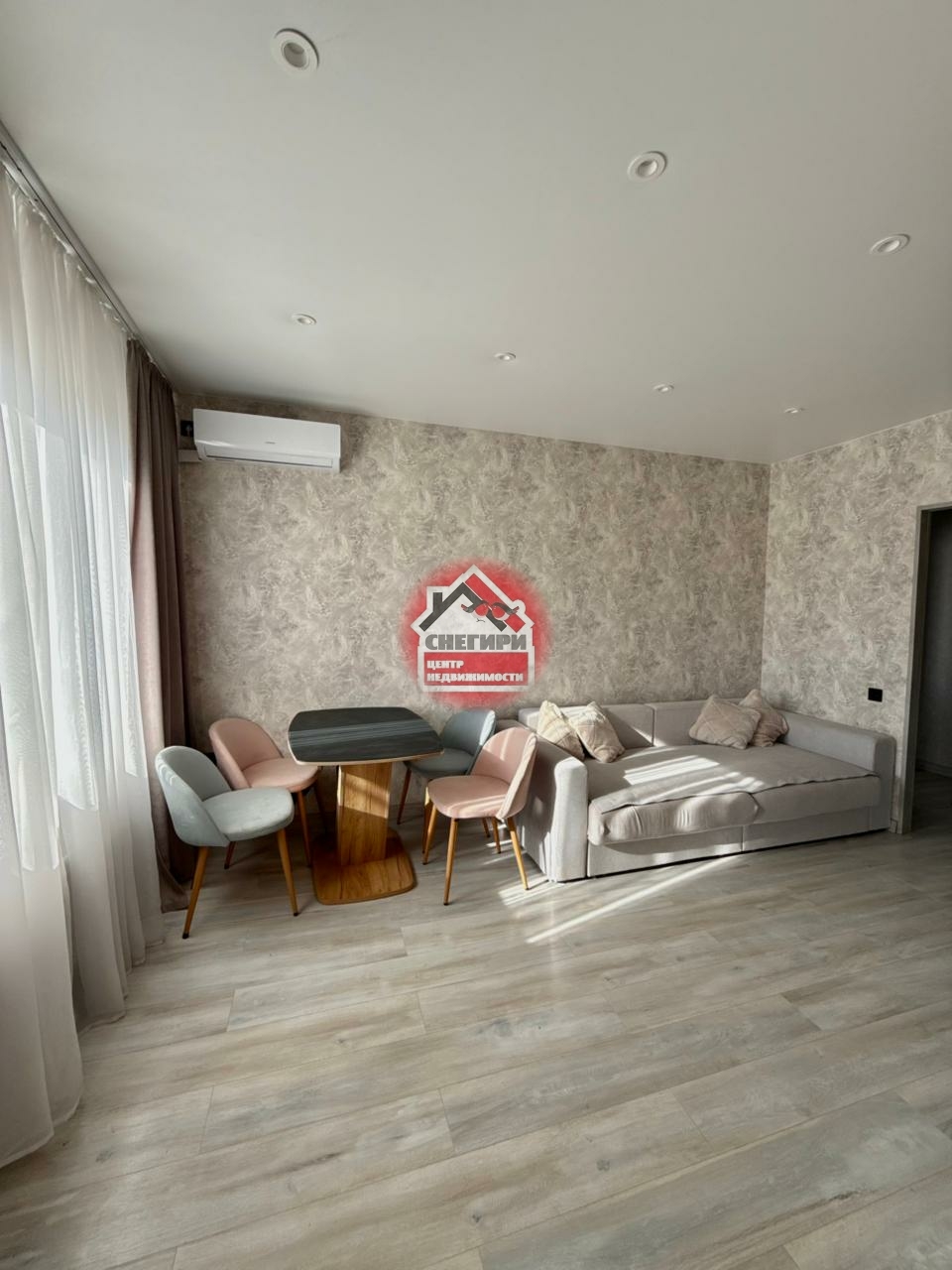 * Зал: стол со стульями, консоль под ТВ, сплит-система, шторы. Диван обсуждается.