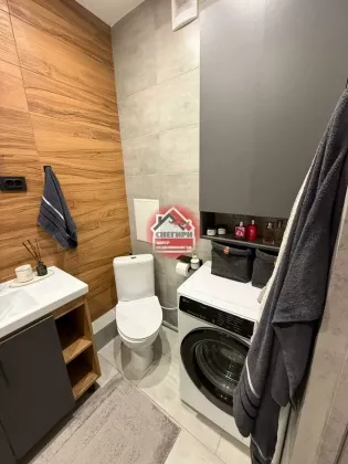 * Санузел: совмещенный, с зеркалом с подсветкой и настенным шкафом для хранения. Остается всё, кроме стиральной машины.