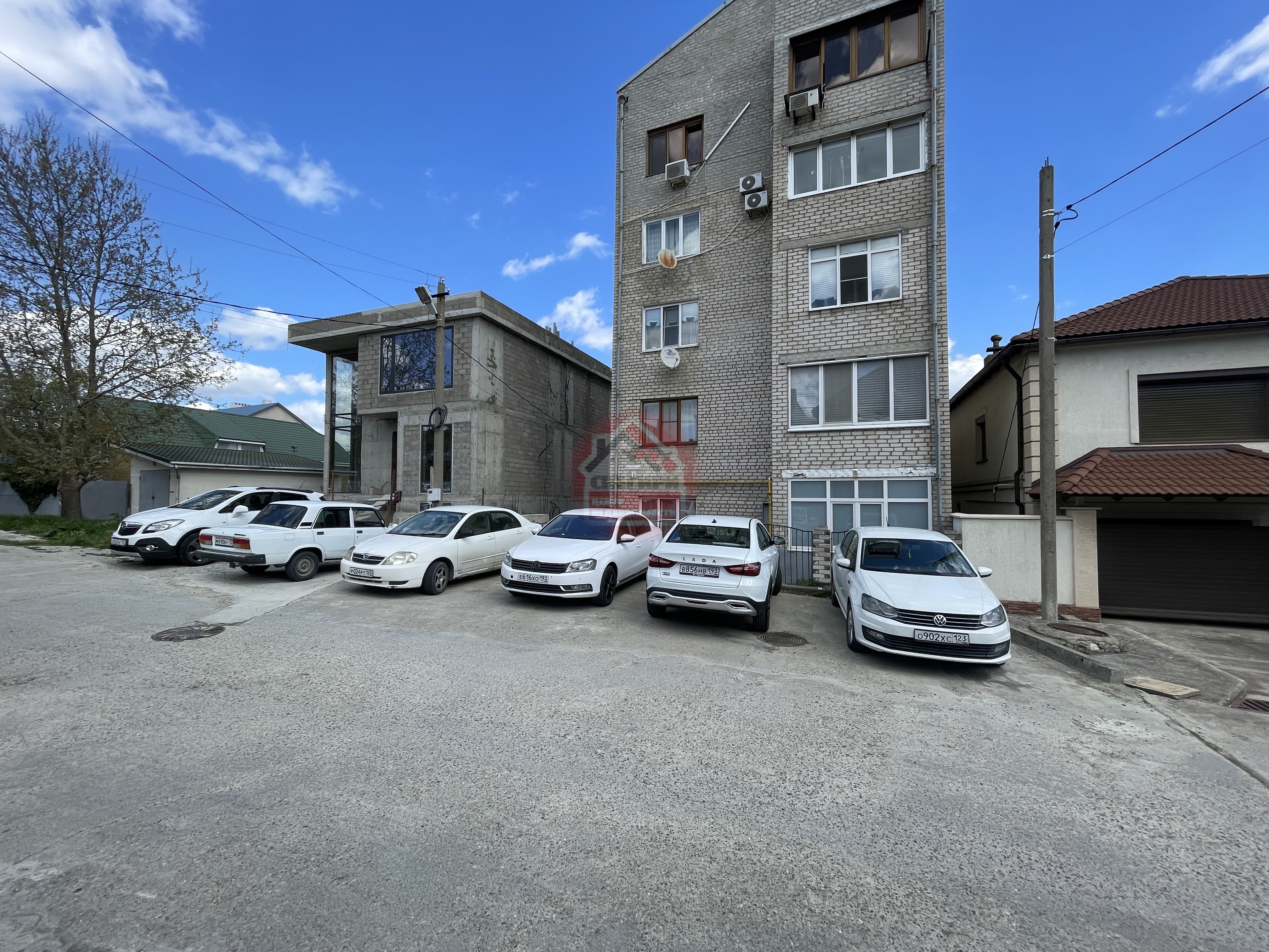 Во дворе закрытая территория, открытая парковка.
