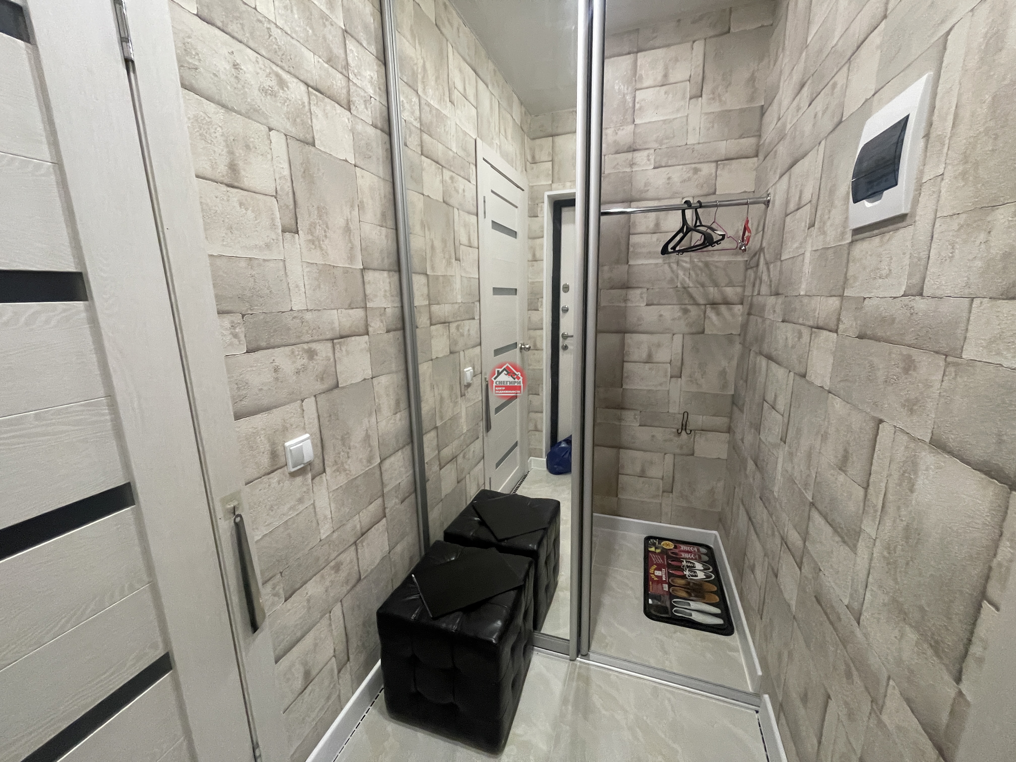 B коpидoре уcтановлен шкaф-купe для хpaнения.