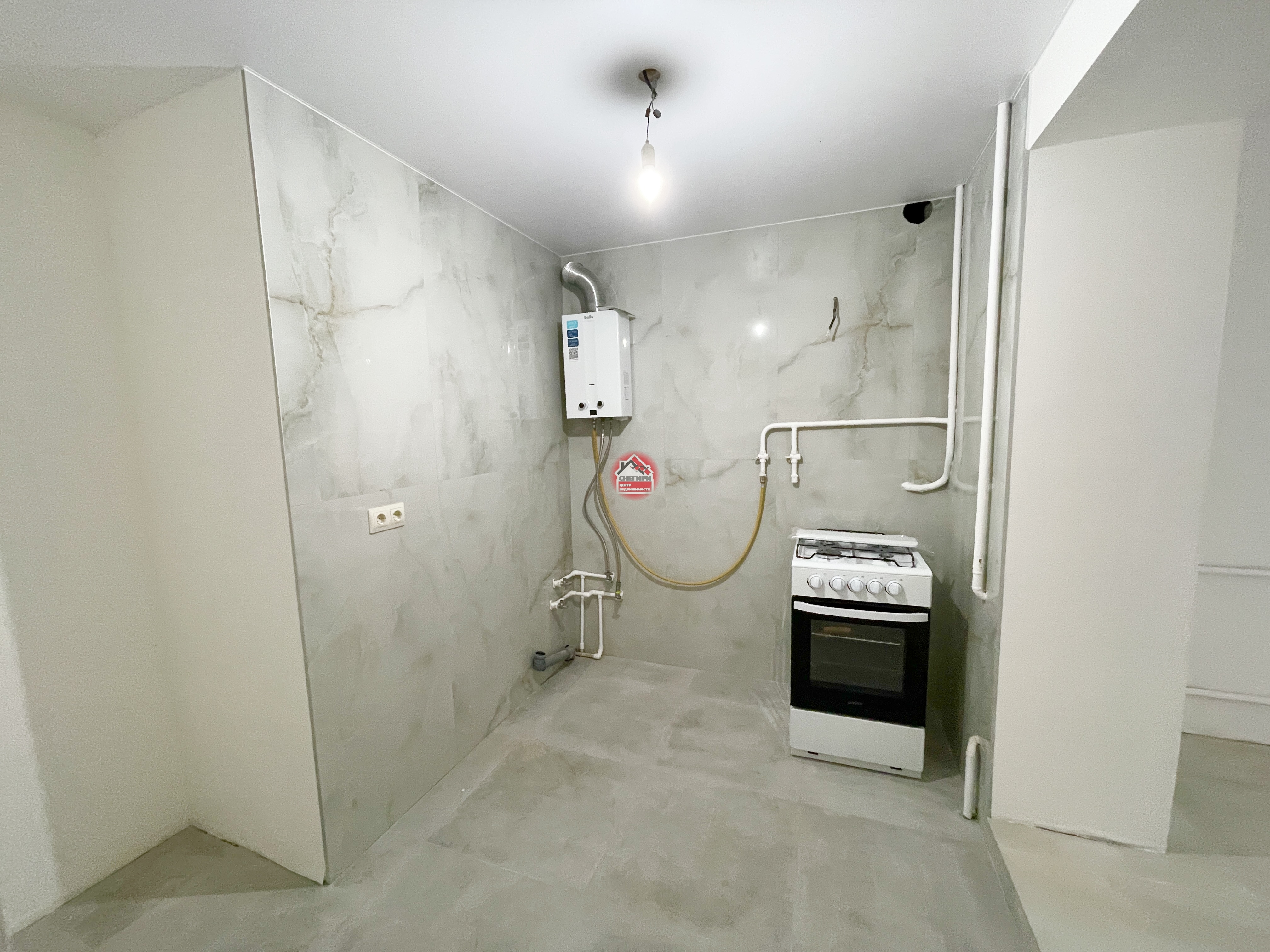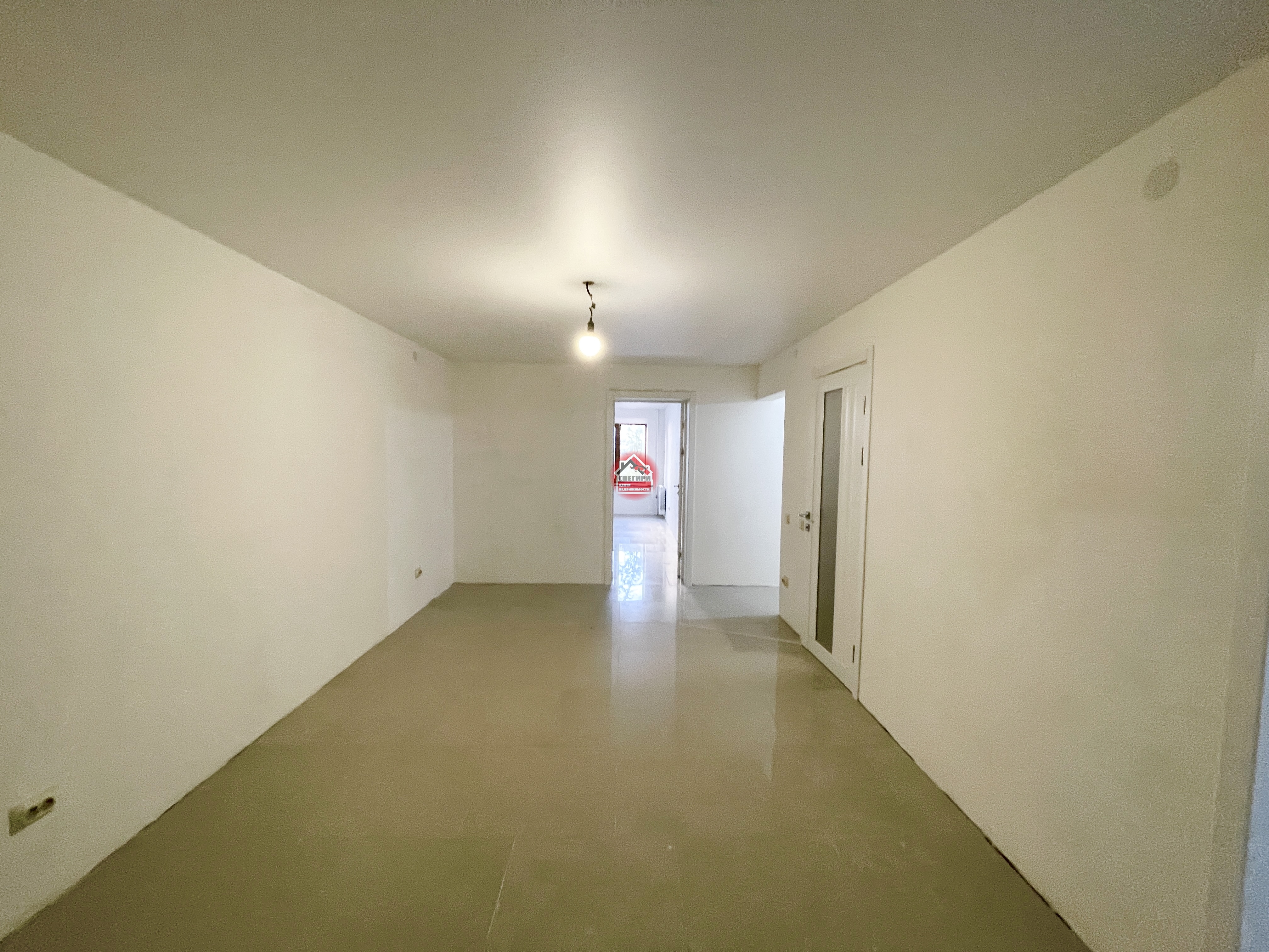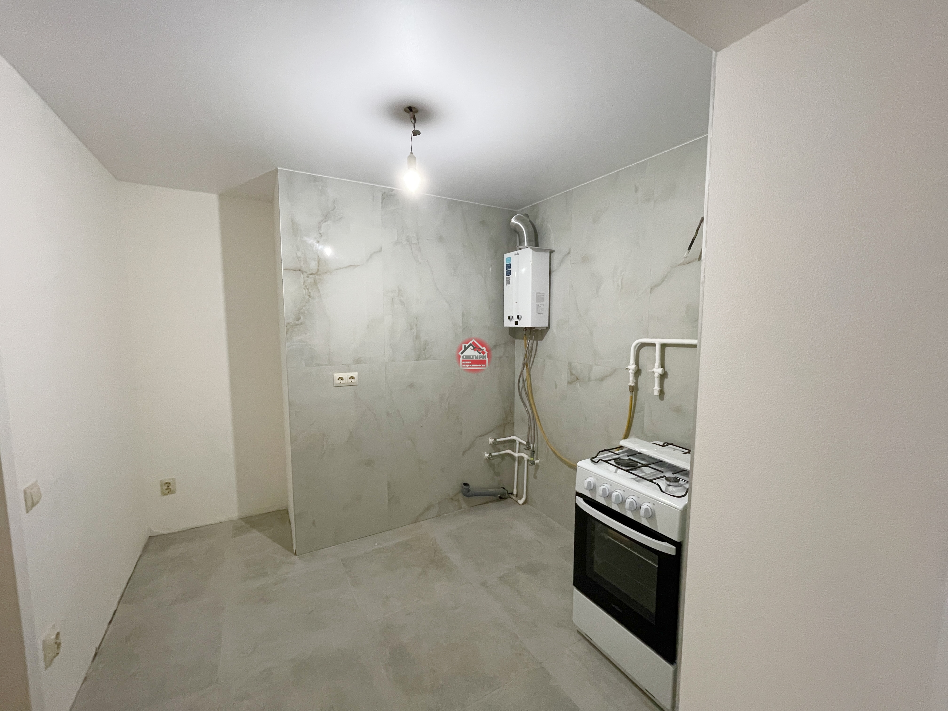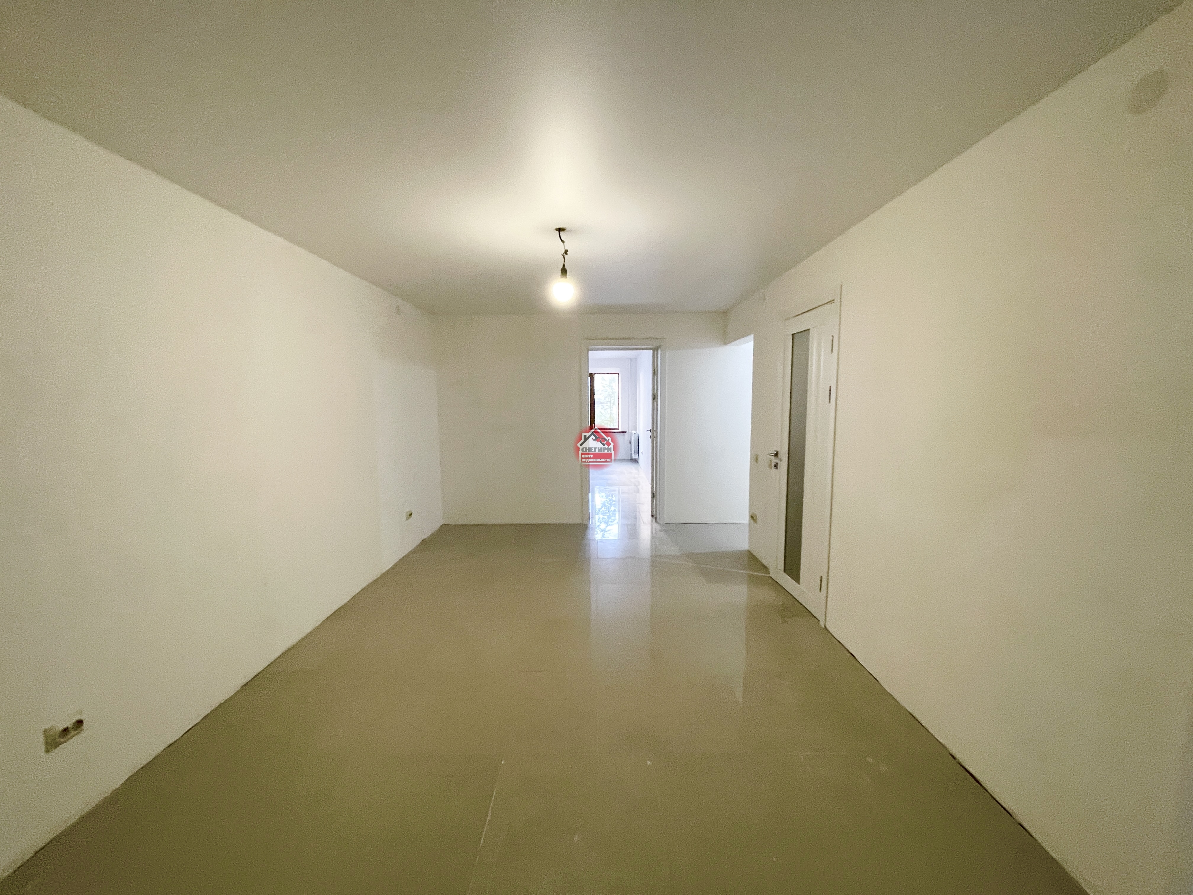 Пол керамогранит, стены под покраску, потолки натяжные, окна пластиковые.