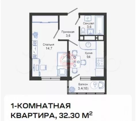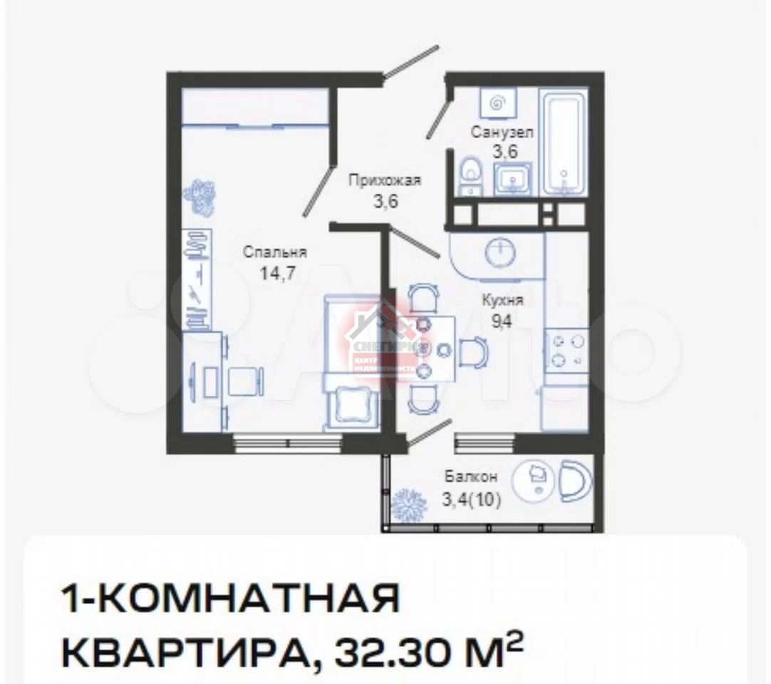 Продается однокомнатная квартира, 32 кв.м., 5/23 эт