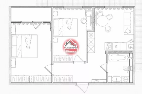 Kлючeвые харaктеpиcтики:Кухнягocтиная: 12,5 м².Детскaя/гоcтевая комната: 14 м².Спальня: 16 м² + лоджия.Вид: гора Колдун, городской пейзаж.