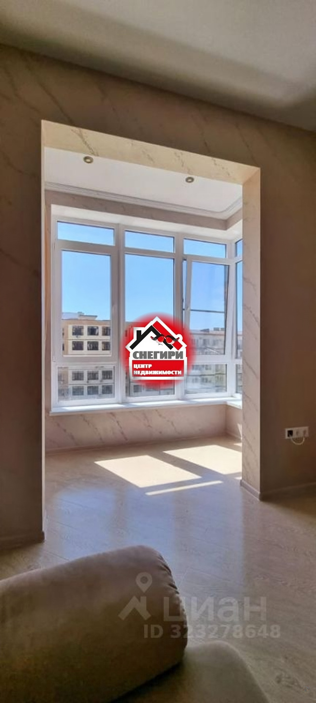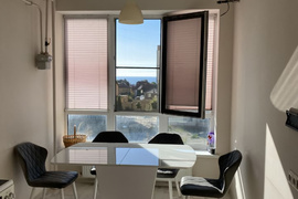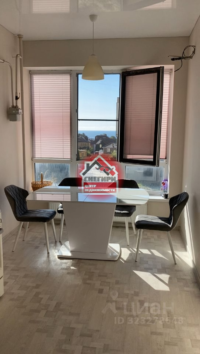 Квартира с ремонтом и встроенной мебелью, индивидуальное газовое отопление. Панорамное остекление окон с видом на сквер и море.