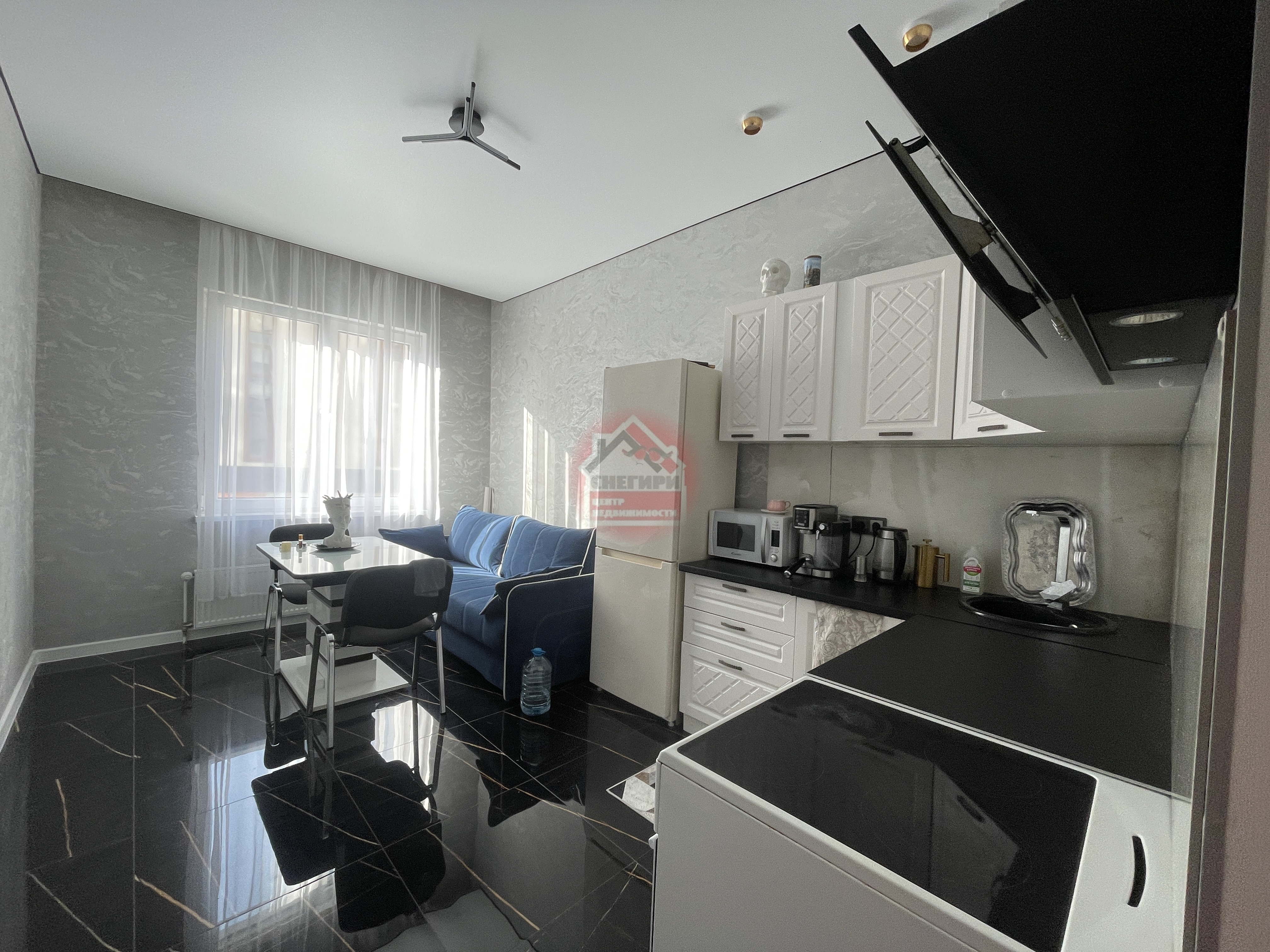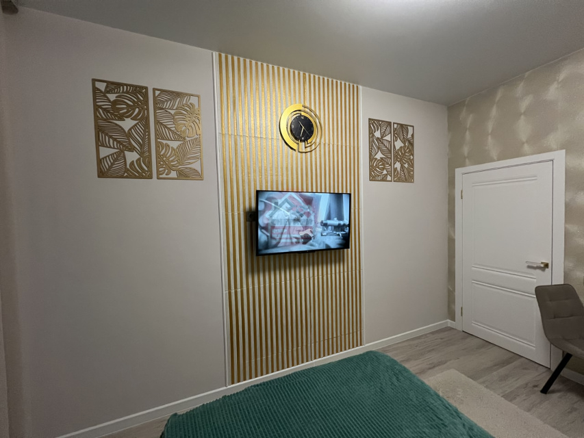 Апартаменты выполнены с качественным евроремонтом, предлагая современный и элегантный дизайн.