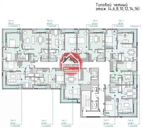 Продается однокомнатная квартира, 61 кв.м., 9/18 эт